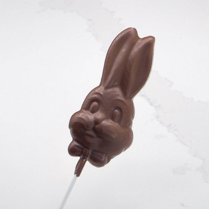 This delightful smiling bunny is the perfect solid milk chocolate Easter treat on a stick. 2.5 oz